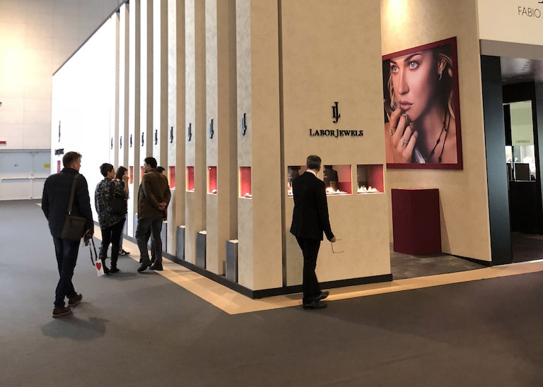 Il s’agit du stand Labor Jewels au salon Vicenza Oro 2018. L’espace a été conçu avec une attention méticuleuse à la fusion entre fonctionnalité et esthétique, créant une expérience unique pour les visiteurs.